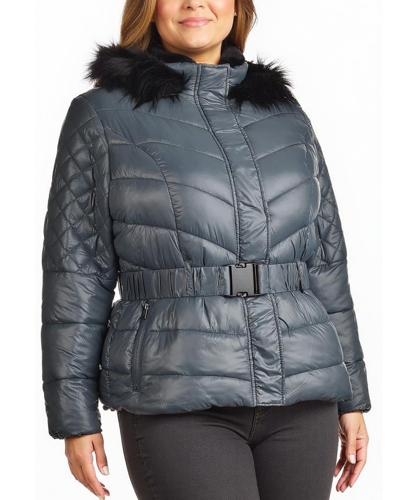 Тънко ватирано дамско яке в тъмносив нюанс с топъл качулка с черен пух, вталена линия с регулируем колан, странични цип джобове и изчистени шевове. Идеално за студено време и ежедневие. Стилен и топъл!