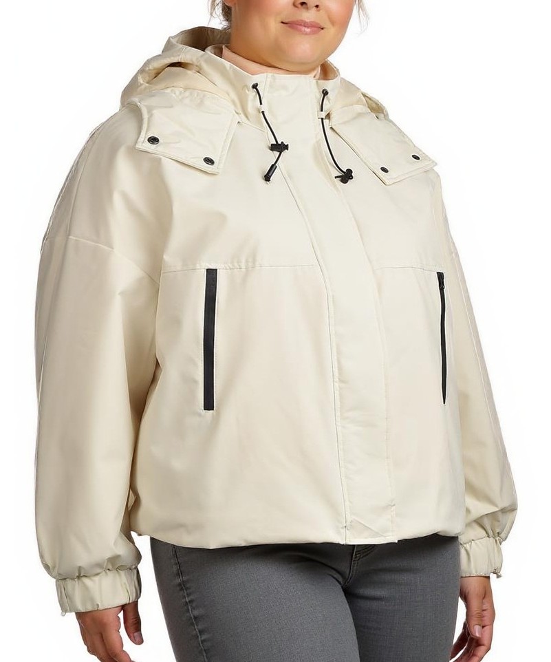 Водоотблъскващо дамско яке с качулка, ципове и дискретни джобове, еластични маншети и свободна кройка. Леки материи, стилно и практично за дъждовни и ветровити дни. Регулируема талия и лесна поддръжка