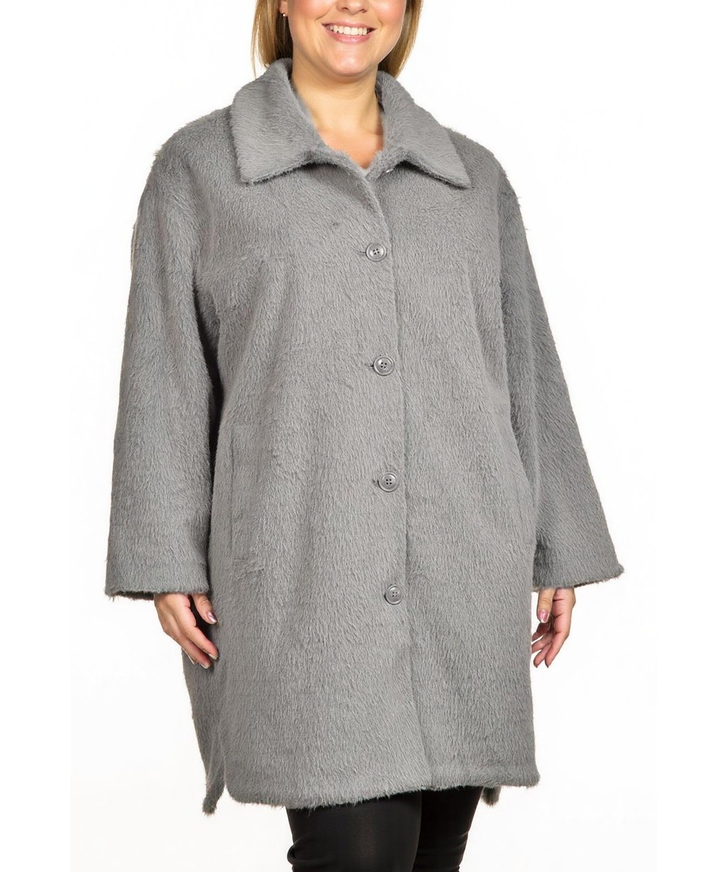 Елегантно дамско палто в сиво, изработено от мек, плътен плат с деликатна текстура. Свободна кройка, дълги ръкави, класическа яка и закопчаване с копчета — стилно и топло за студените дни. Практично!!