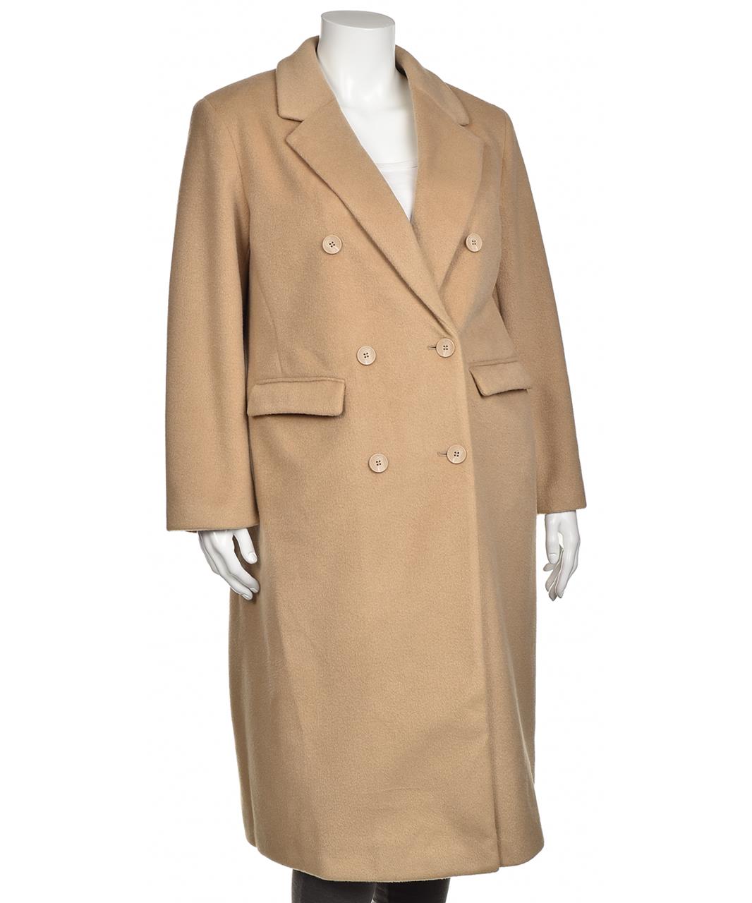 Елегантно дамско дълго палто в камел нюанс, с двуредно закопчаване и ревери, джобове с капаци и прав силует. Идеално за офис и ежедневно носене през есен и зима. Топла подплата и класически вид. Тънко
