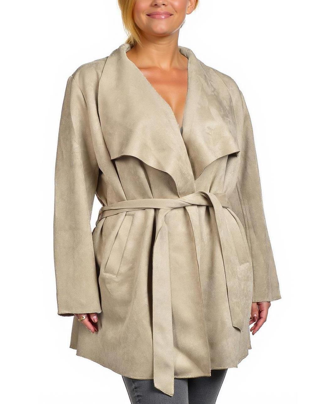 Бежово дамско палто от ефектна велурена материя с широк шал-яка, колан и джобове. Модерно, леко вталено, идеално за преходни сезони — елегантно и удобно за всеки ден. Перфектно за офиса и ежедневието....