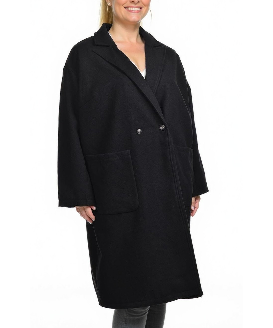 Елегантно дамско палто от вискоза с класическа двуредова кройка, ревера и големи джобове. Меко, топло и стилно, идеално за преходните сезони, комбинира се лесно с ежедневен и официален тоалет. Чудесно