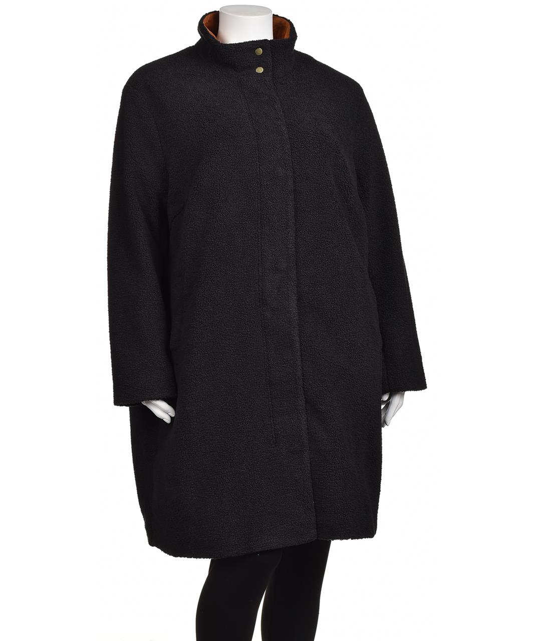 Елегантно дамско памучно палто в класическо черно. Меко, топло и удобно, с висока яка и скрито закопчаване. Идеално за градски стил и ежедневна употреба, налични размери. Свободен силует, лесна грижа.