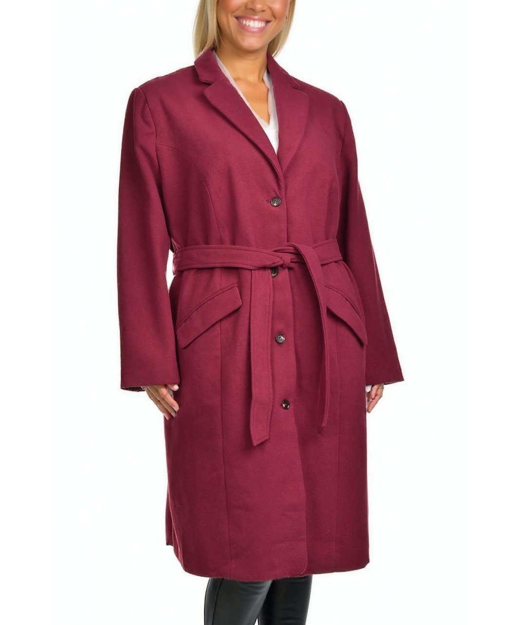Елегантно дамско палто от вискоза в бордо. Класическа линия с шал яка, колан, джобове с капаци и закопчаване с копчета. Меко, топло и лесно за комбиниране. Подходящо за офис, делник и събития. Стилно.