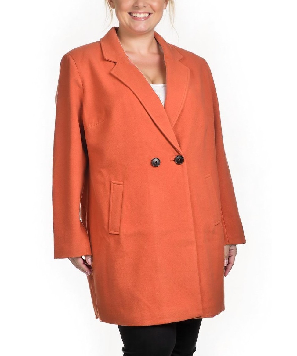 Елегантно дамско палто от вискоза в топъл керемиден нюанс. Двуредно, прав силует, ревери и дискретни джобове. Меко, дишащо и подходящо за преходните сезони — стил и комфорт. Перфектен за град и офис!!