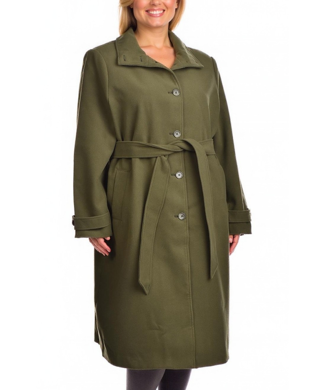 Дълго дамско палто от вискоза в модерен оливен нюанс. Прав силует с колан, копчета и джобове. Удобно, елегантно и подходящо за ежедневни и по-официални визии. Лесна поддръжка и различни размери. Код1.