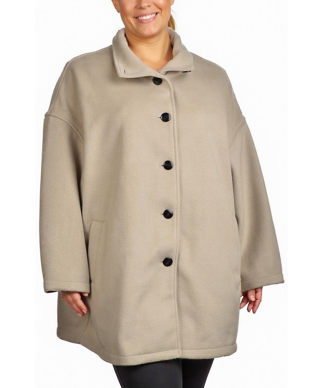 Бежово дамско палто с изчистен, свободен силует. Меко, топло, с прави ръкави, джобове и закопчаване с копчета. Идеално за ежедневие и градски стил през хладните месеци. Подходящо за всички възрасти!!