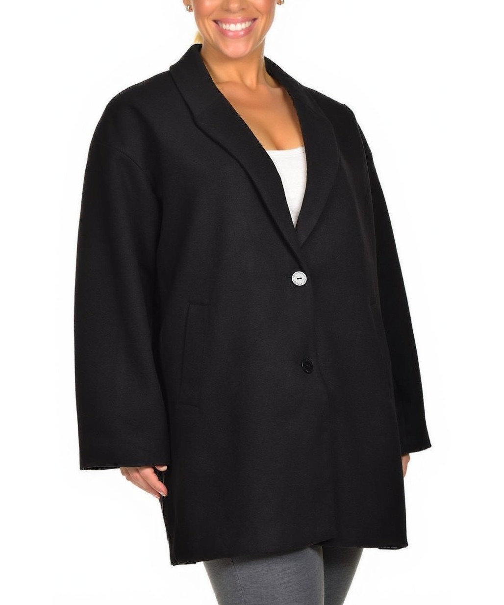 Елегантно дамско палто от вискоза в класическо черно, с прав силует, ревери и джобове, двуредно закопчаване с копчета. Меко, дишащо и подходящо за офис и свободно време. Подплатено, лесно за поддръжка
