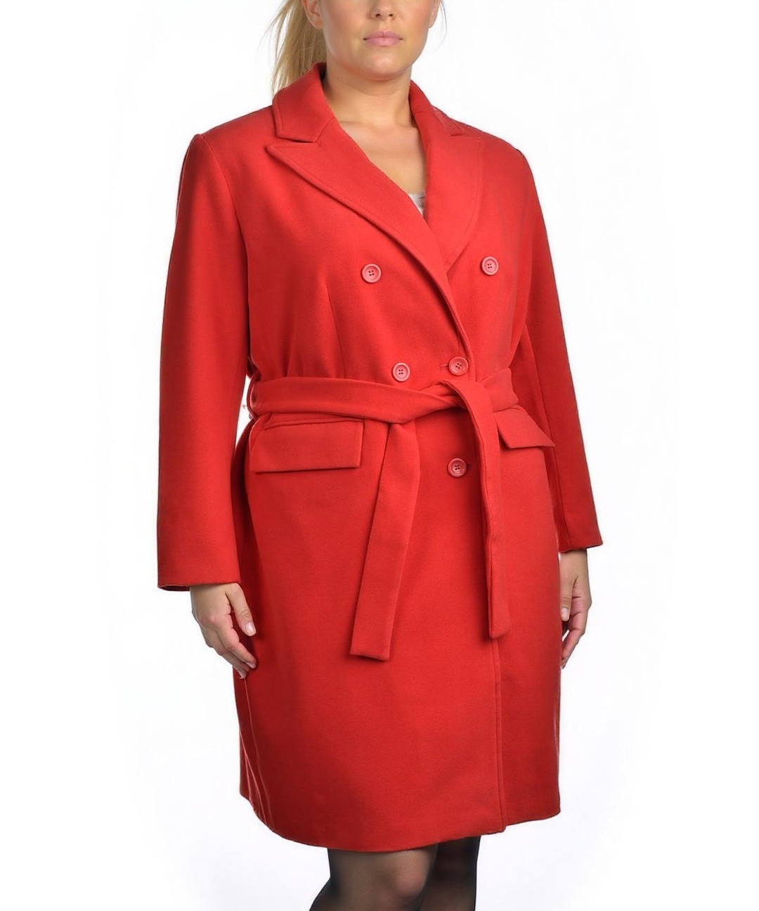 Елегантно дамско палто от вискоза в наситено червен цвят. Двойно закопчаване, колан за талията, ревери и джобове. Модерен, уютен и универсален модел за всеки студен ден. За всеки ден и официални срещи
