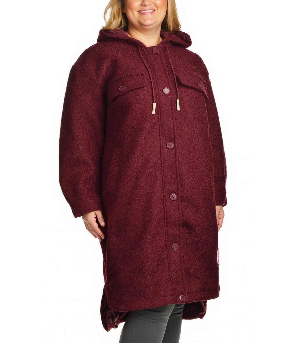 Дамско бордо палто с качулка и връзки, дълго и удобно, с копчета отпред и джобове на гърдите. Меко, топло, подплатено – стилно за ежедневието и хладните дни. Подплата, лесна поддръжка, свободен размер
