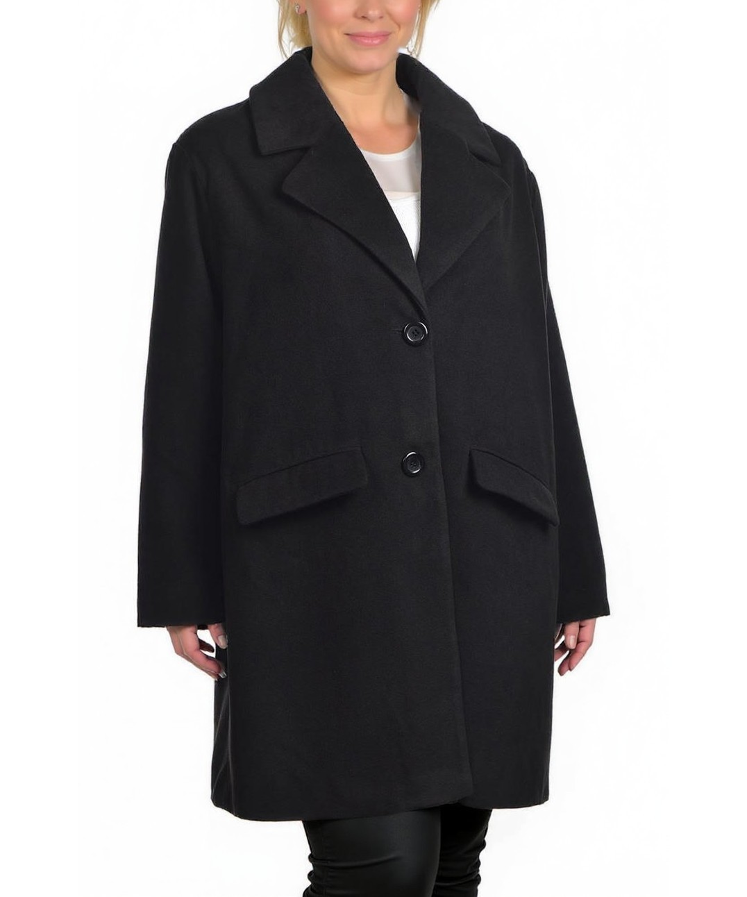 Елегантно дамско палто от вискоза в черно. Прав силует и средна дължина, ревера, двубутонно закопчаване, капаци на джобовете. Топла подплата за комфорт и стил. Практично за есен и зима лесно комбиниране