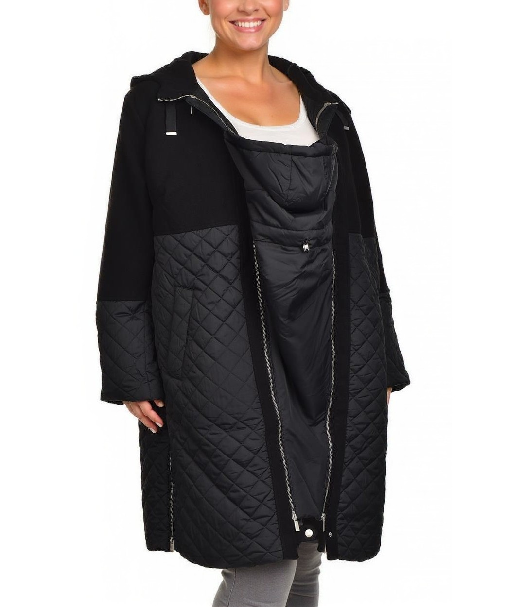 Елегантно дамско палто от вискоза с вградено приспособление за новородено. Куилтовани панели, качулка, цип и джобове осигуряват топлина, удобство и стил при разходки с бебето. Лесно се пере и адаптира