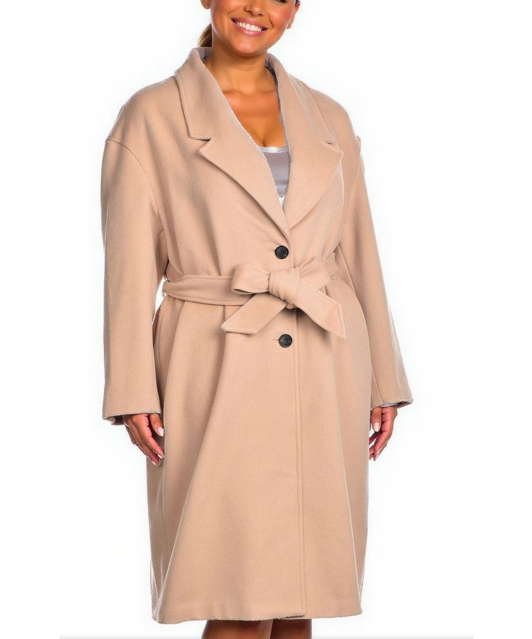 Елегантно дамско преходно палто от вълна в бежов тон, с ревери, два копчета и колан за подчертана талия. Средна дължина, топло и стилно за междинни сезони. Съчетава се лесно с ежедневни и официални визии.
