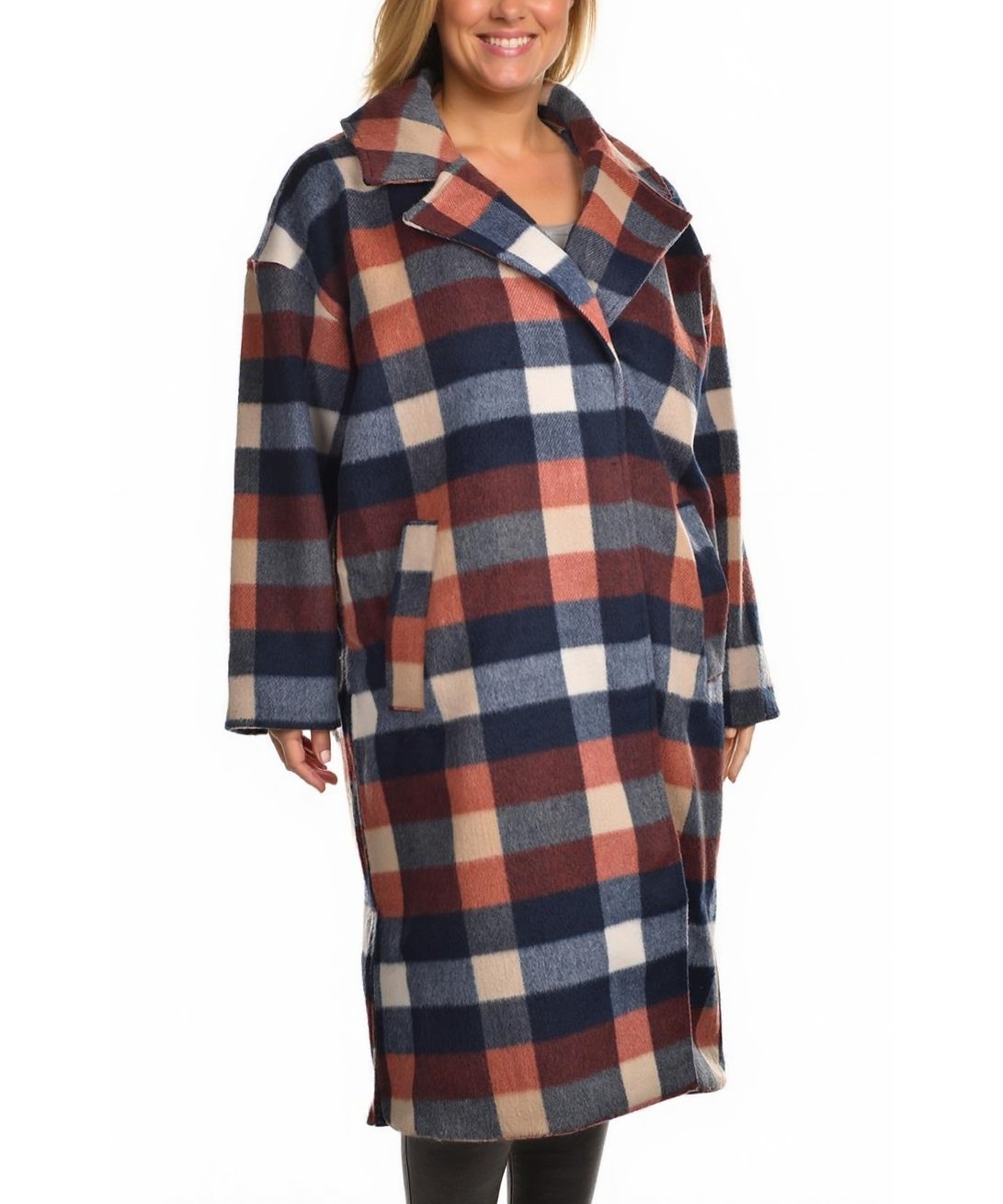Дамско палто за бременни в кариран принт. Оверсайз силует, мек вълнен ефект, дължина до коляното, странични джобове и дискретно закопчаване. Топло и удобно за бременността.
