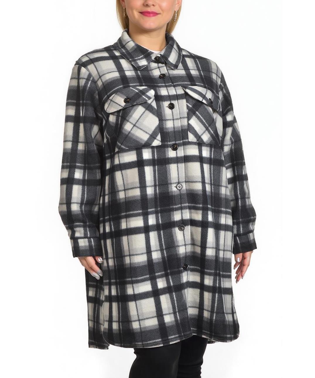 Топло дамско поларено яке тип риза в кариран десен. Закопчаване с копчета, джобове на гърдите, дълга свободна кройка, мек и лек материал. Идеално за ежедневно носене. Лесна поддръжка и подходящо за зима