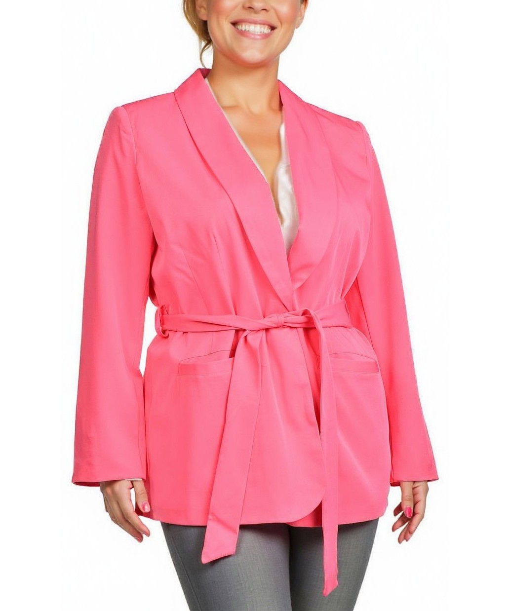 Елегантно дамско сако в ярко розов цвят с шал яка и колан за връзване. Има дискретни джобове, прав силует и дълги ръкави. Перфектно за офис и ежедневни комбинации. Лек и стилен, идеален за всеки ден!!