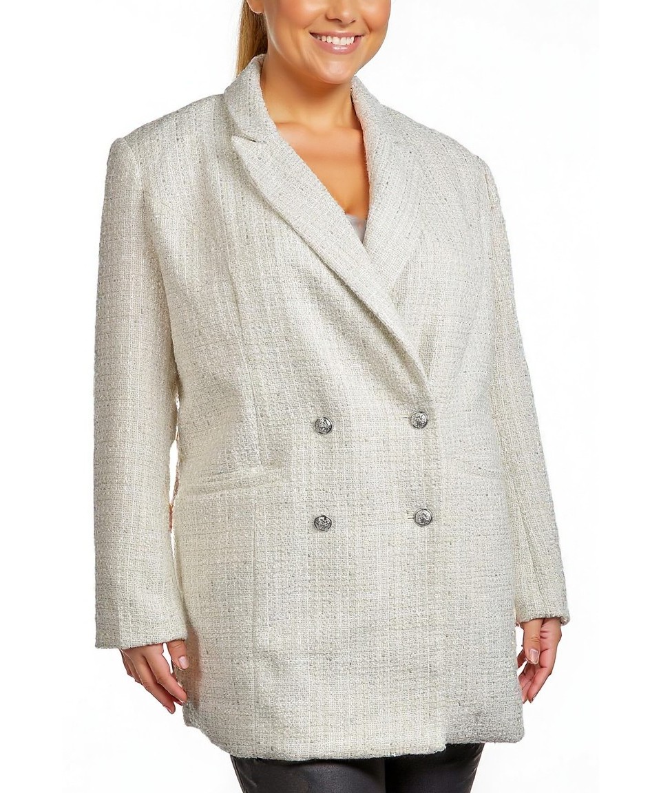Елегантен дамски блейзър в кремаво с букле текстура, двуредово закопчаване със стилни метални копчета, прав силует и джобове. Универсален модел за офис и официални поводи. Подходящ за пролет и есен...