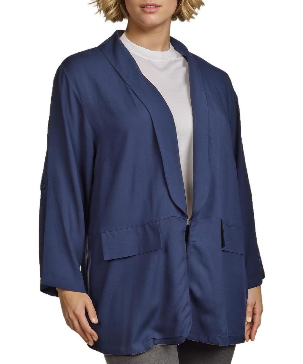 Елегантно дамско сако, изработено от висококачествена вискоза, в стилен тъмносин цвят. Моделът е с дълги ръкави и ревер, предлага комфорт и изтънченост за ежедневни или официални поводи.