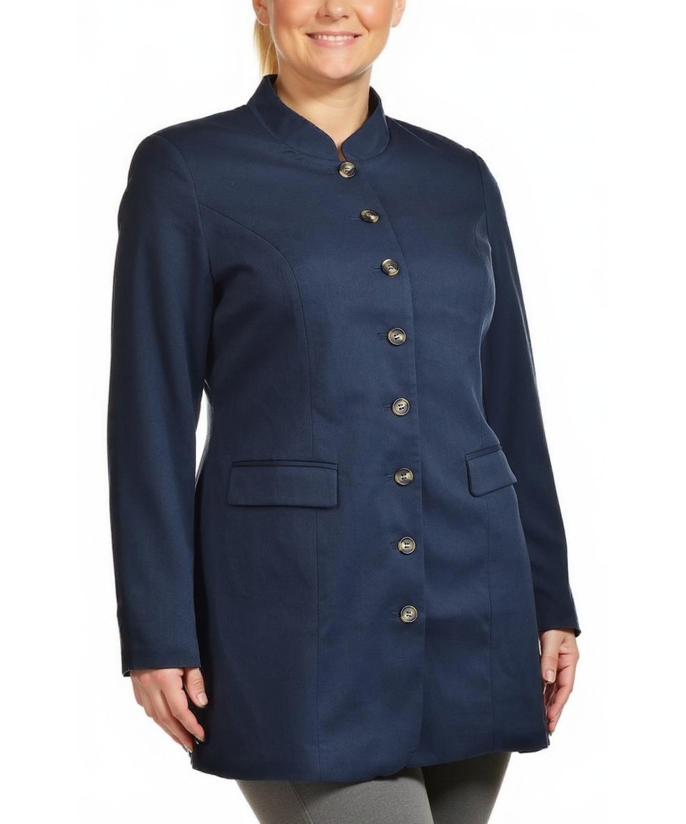 Елегантно дамско сако от вискоза в тъмносин нюанс. Прав силует с изчистени шевове, висока яка и ред декоративни копчета. Практични джобове, меко усещане и подходящо за всеки ден. С удобно закопчаване.