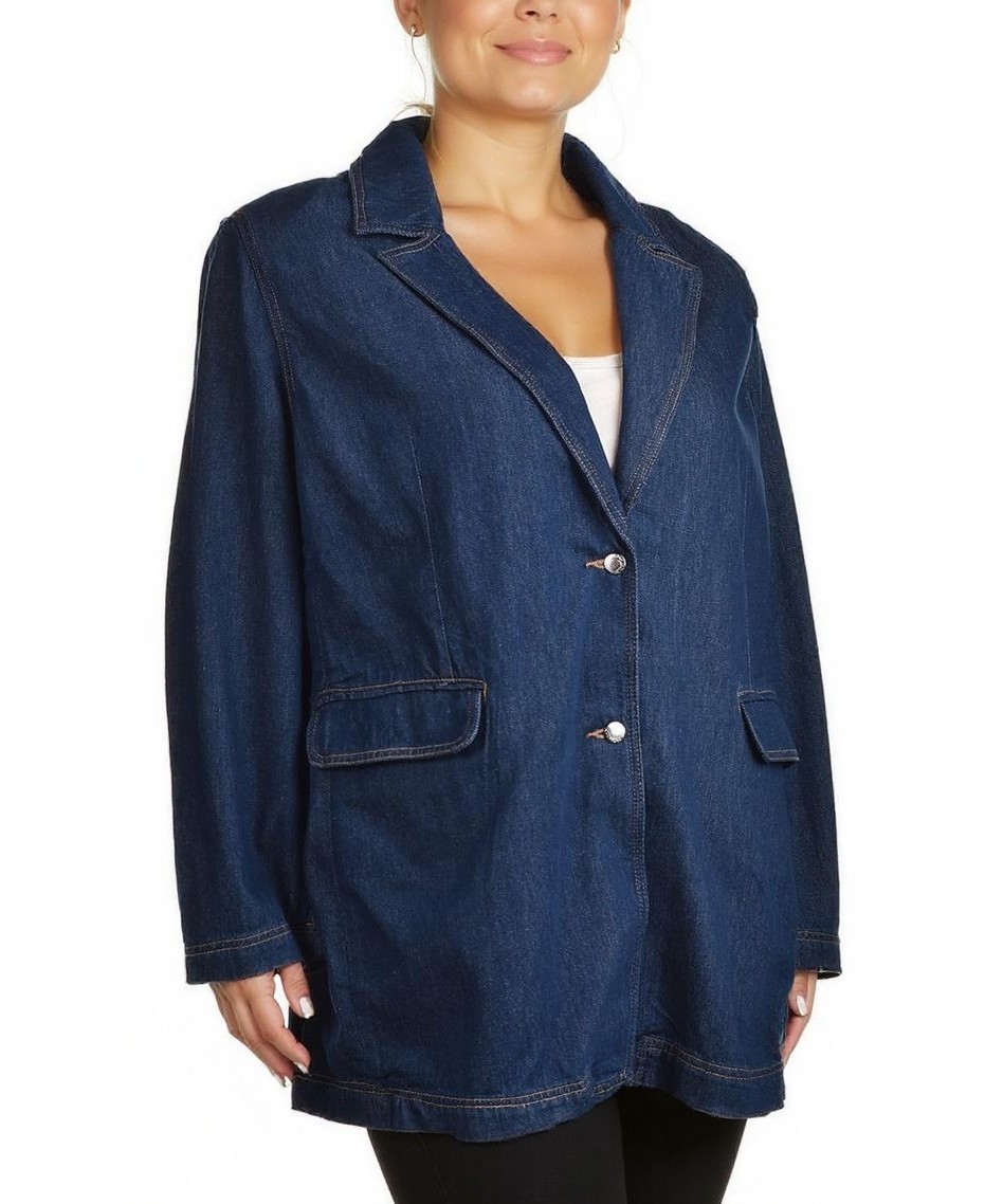 Дамско памучно сако с дънков ефект, елегантна права кройка, две джобчета с капаци и метални копчета. Удобно, дишащо и лесно за комбиниране — идеално за ежедневна и офис визия. Подходящо за пролет/есен