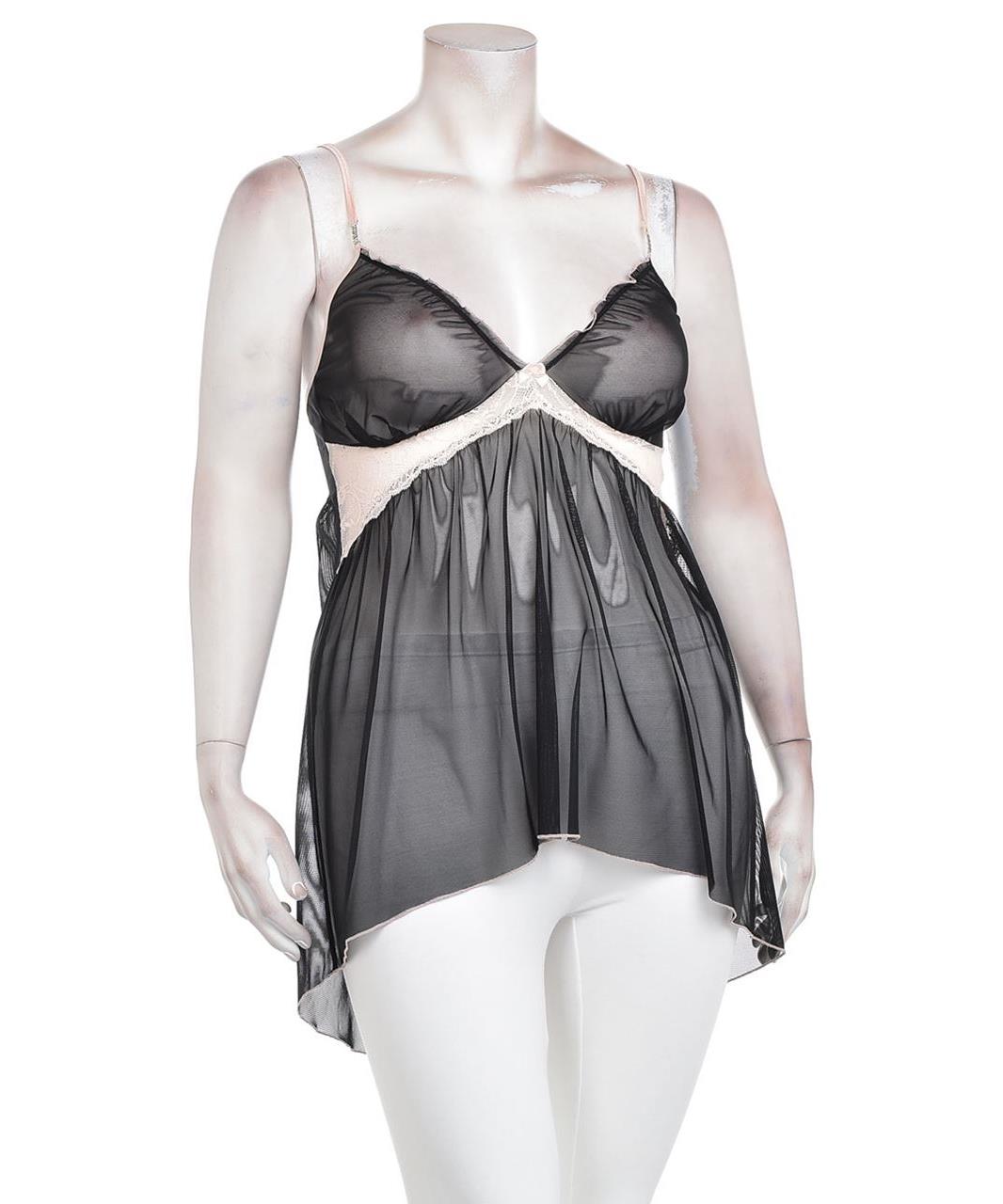 Елегантен корсаж от прозрачна черна материя с нежна дантела под бюста, тънки регулируеми презрамки и свободна, ефирна пола. Идеален за специални вечери и комфортен сън. Лека еластична материя, удобна.
