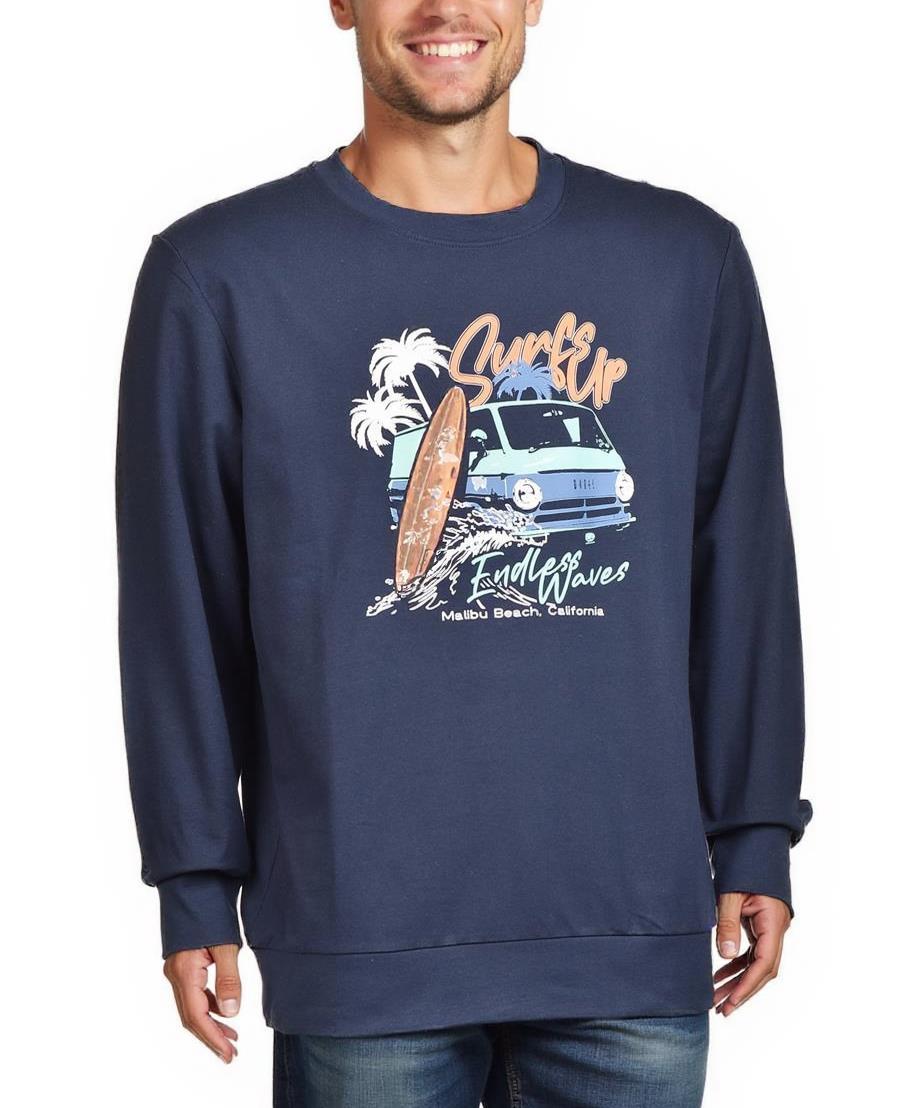 Мъжка памучна блуза в тъмносиньо с дълъг ръкав и плажен принт „Surf“. Мека, дишаща материя, удобна права кройка и еластични маншети. Перфектна за ежедневно и свободно носене. Лека поддръжка, пране на 30°