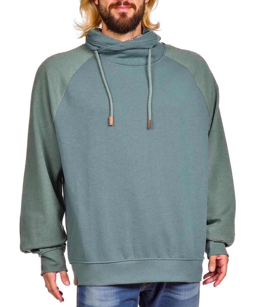Мъжка памучна блуза с мека, дишаща материя и свободна кройка. Висока яка с връзки, дълги ръкави и еластични маншети. Идеална за ежедневно носене и релаксиран стил. В унисекс зелен цвят, лесна поддръжка.