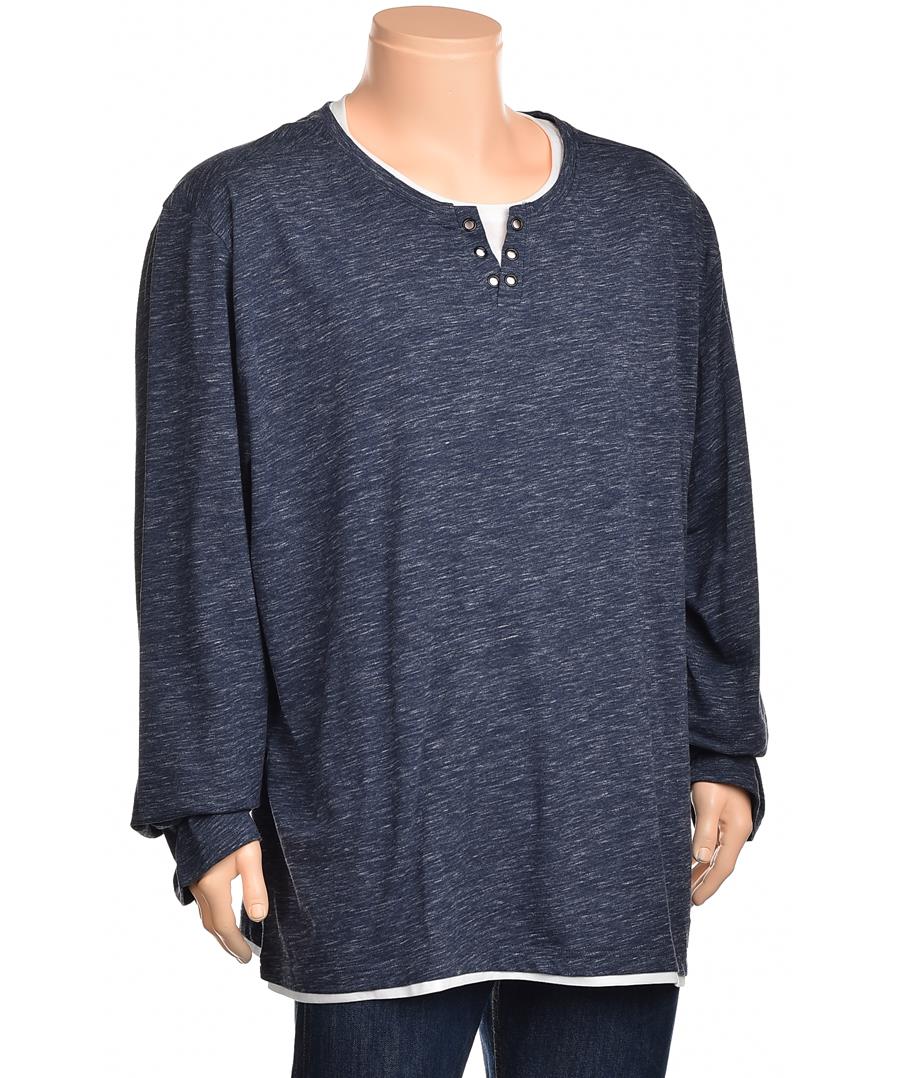 Мъжка блуза в тъмносин меланж, свободна кройка и дълъг ръкав. Нежен плат, удобна за всеки ден. Декоративно закопчаване при деколтето и контрастна подгъвка за спортно-елегантен вид. Подходяща навсякъде