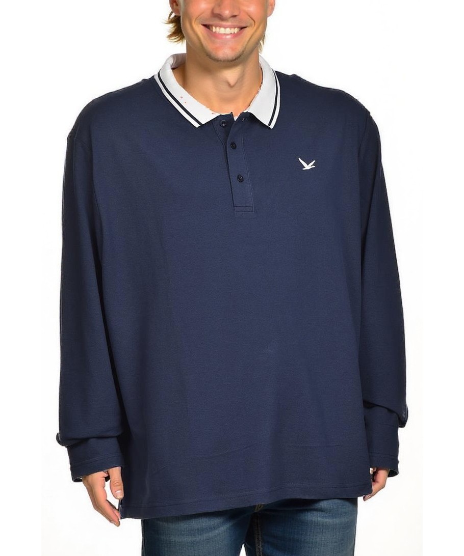 Мъжка памучна блуза в тъмно синьо, класическо поло с яка и три копчета. Мека, дишаща материя, удобен свободен силует и дискретно емблемно лого — идеална за ежедневен стил. Подходяща за офиса и уикенда