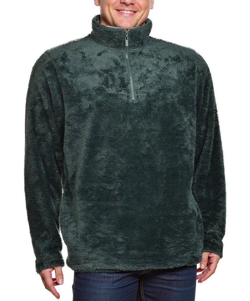 Мъжка пухкава блуза с цип до гърлото, тъмнозелена, топла и удобна. Мека плюшена материя, дълъг ръкав и свободна кройка — идеална за студено време и ежедневни визии. Подходяща за планина, дом и спорт.!