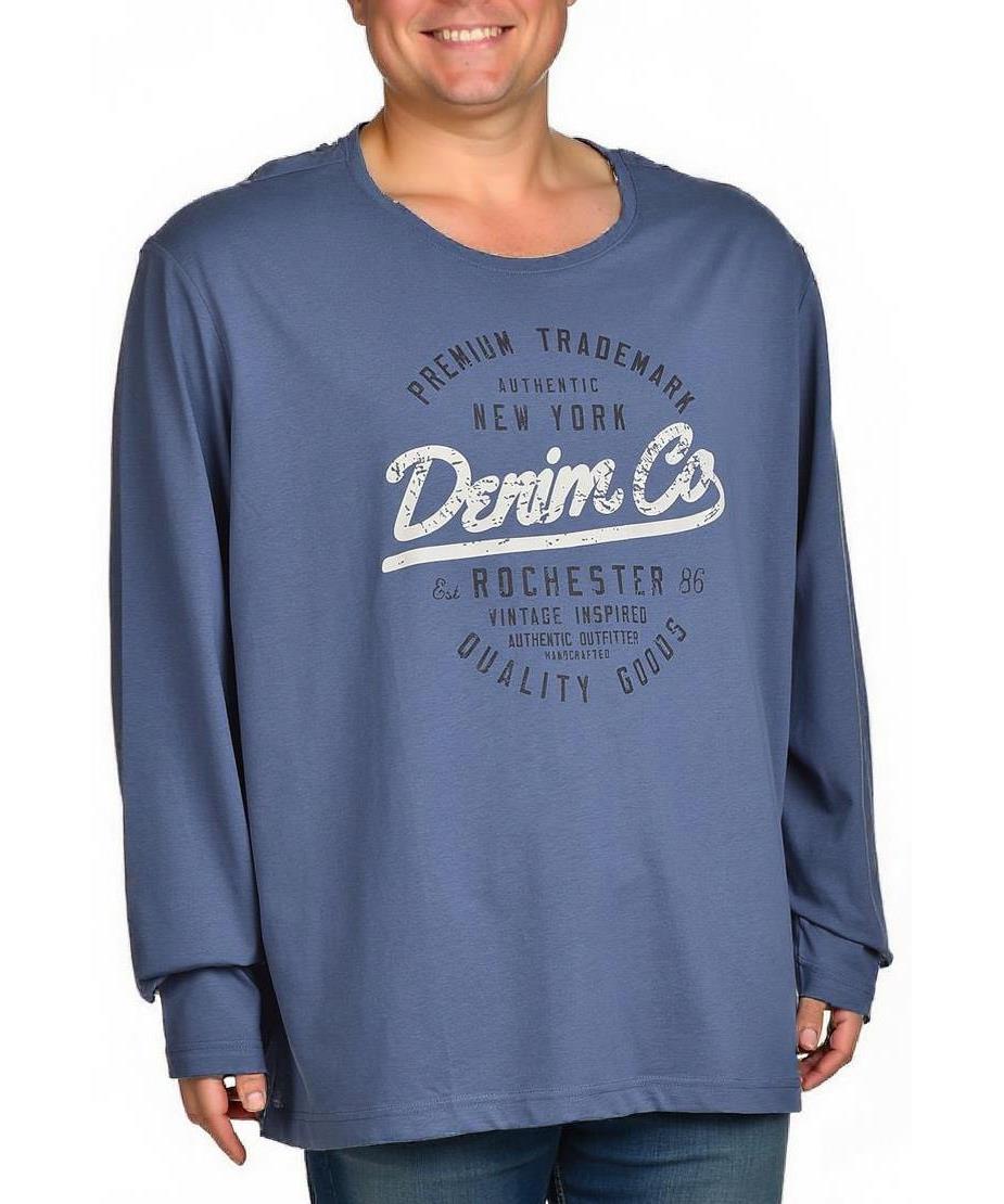 Мъжка памучна блуза с дълъг ръкав, класическа кройка и винтидж принт 'Denim Co' в предната част. Мека, дишаща материя за ежедневна употреба и комфорт. Подходяща за ежедневно носене, лесна поддръжка. 100%