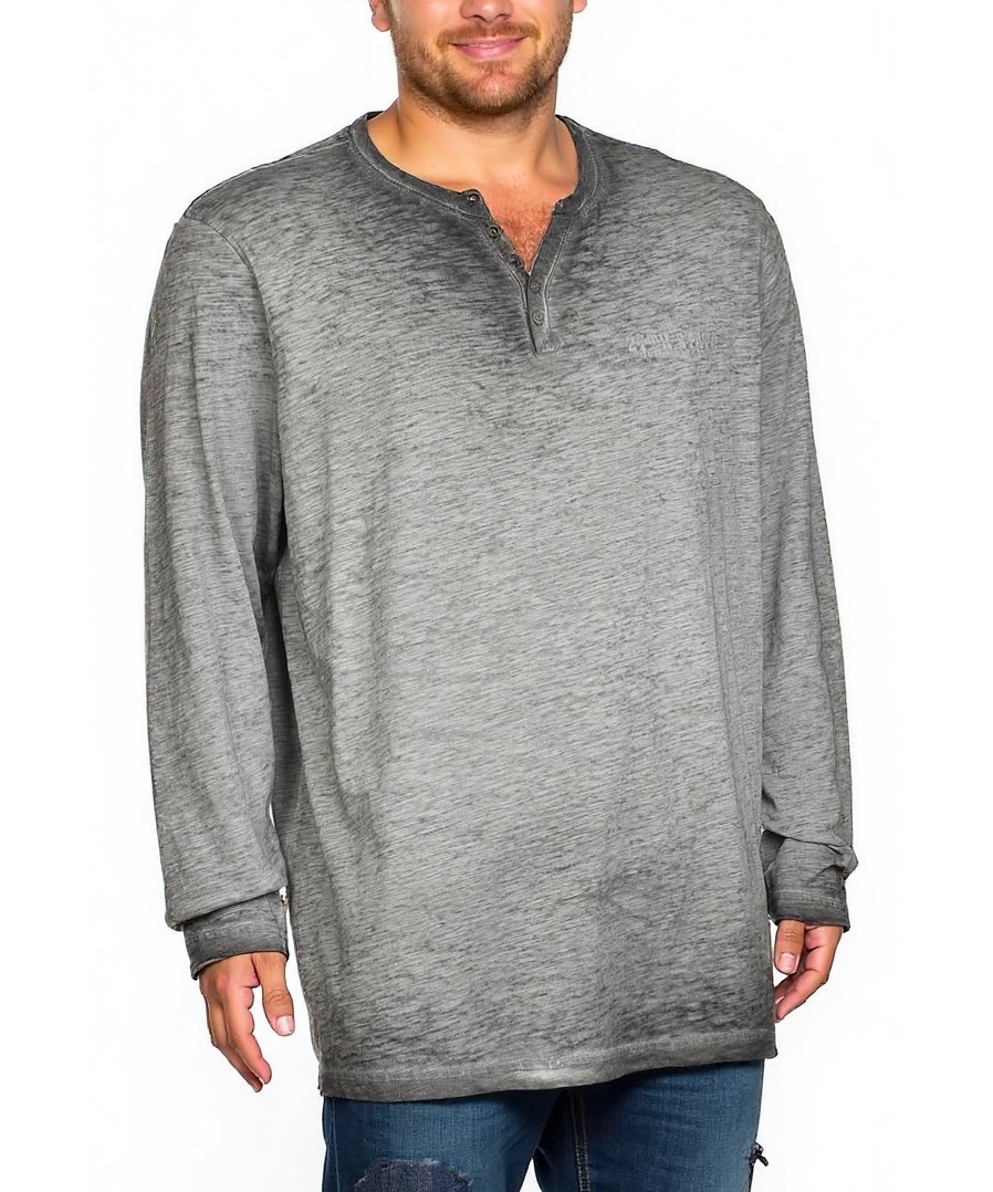 Мъжка памучна блуза с дълъг ръкав и нежен износен ефект в сиво. Хенли модел с копчета на деколтето, свободна кройка за удобство и ежедневен стил. Мека, дишаща и лесна за поддръжка. Достъпен и стилен!!