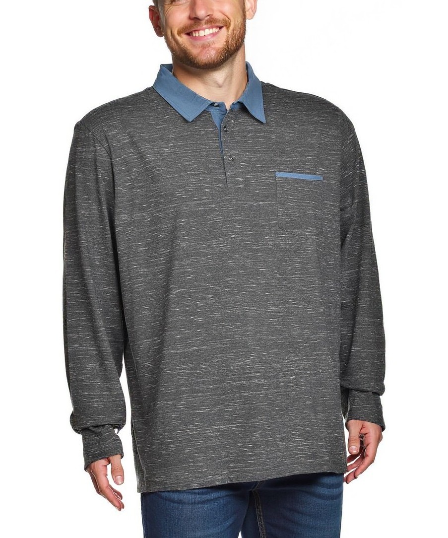 Мъжка памучна блуза с дълъг ръкав и поло яка в контрастен цвят. Мека и дишаща материя, малък джоб на гърдите, универсален модерен силует за всеки ден и лесна поддръжка. За всеки ден и свободно време.!