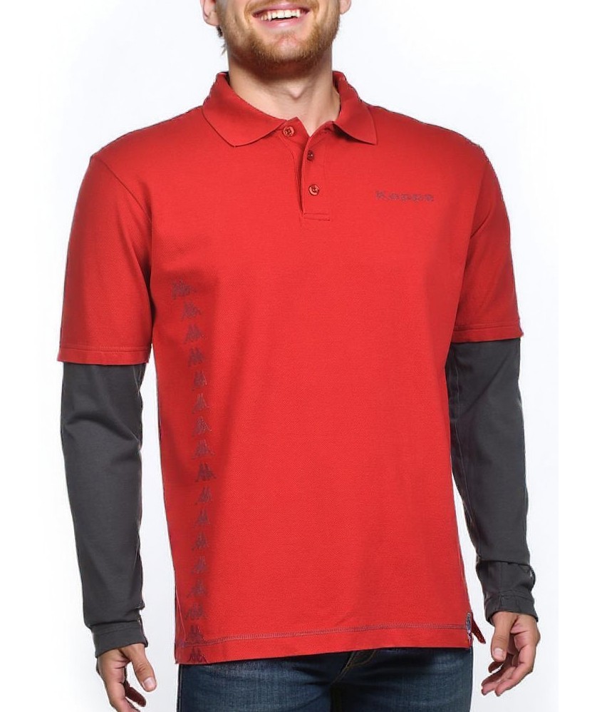 Мъжка памучна поло блуза в червен цвят с къс ръкав и вграден ефект на дълъг ръкав, комфортна, дишаща материя, класическа яка с копчета. Идеална за ежедневно и свободно облекло. Модерен избор за всеки ден