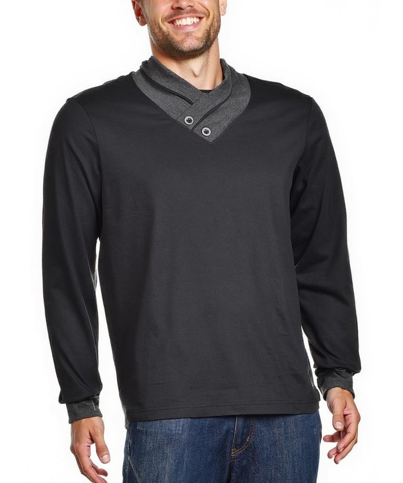 Мъжка памучна блуза с дълъг ръкав и модерен V-як с декоративни копчета. Мека, дишаща материя, приятна и удобна кройка за всеки ден. Комбинира се лесно с дънки и спортно облекло. Налични размери S-XXL.