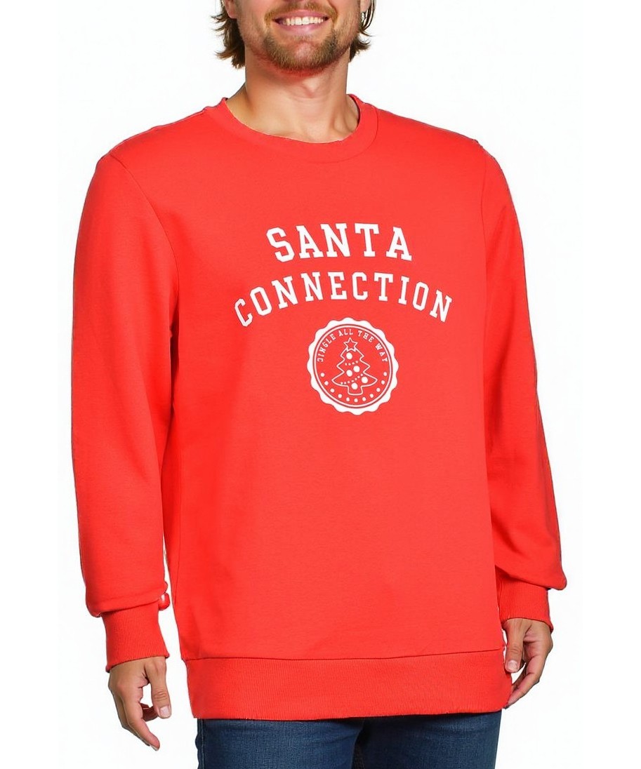 Мъжка памучна блуза в ярко червен цвят с декорация "Santa Connection" и празничен мотив. Мека и дишаща материя, класическа кройка с дълги ръкави и рибана маншети — удобство за всеки ден. За подарък!
