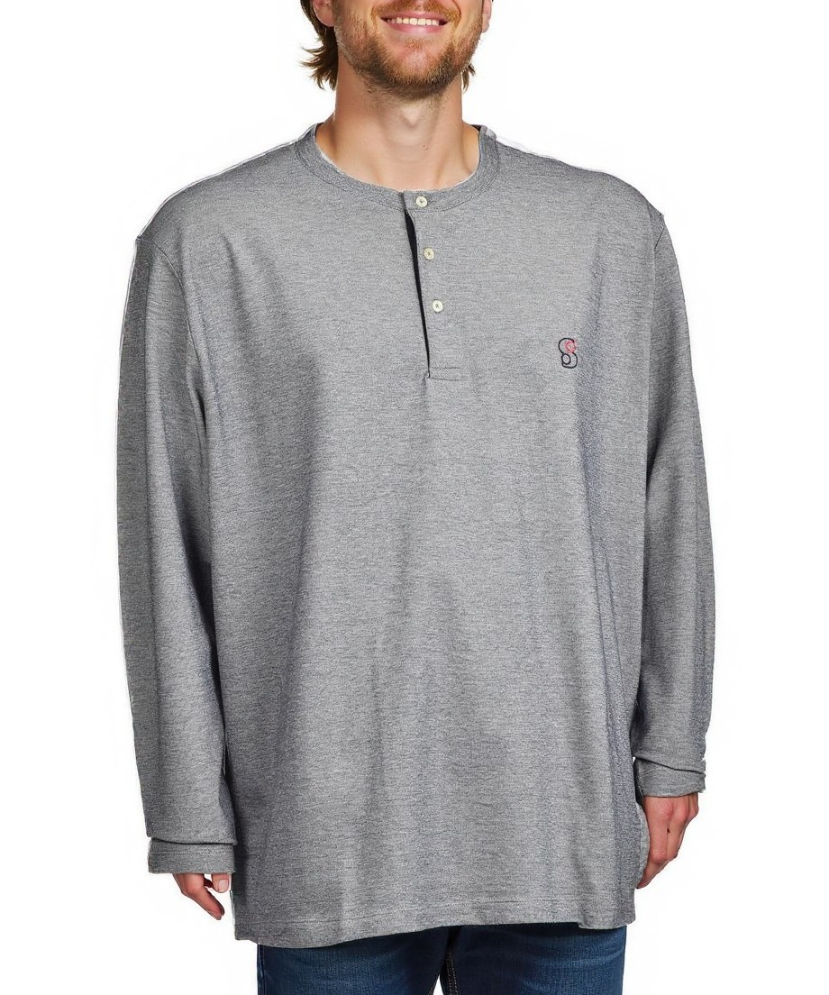 Мъжка блуза от памук в сив меланж, с дълги ръкави и реглан силует. Комфортна, дишаща материя с копчета на деколтето и ненатрапчиво бродирано лого – идеална за всеки ден. Подходяща за всеки ден и излет