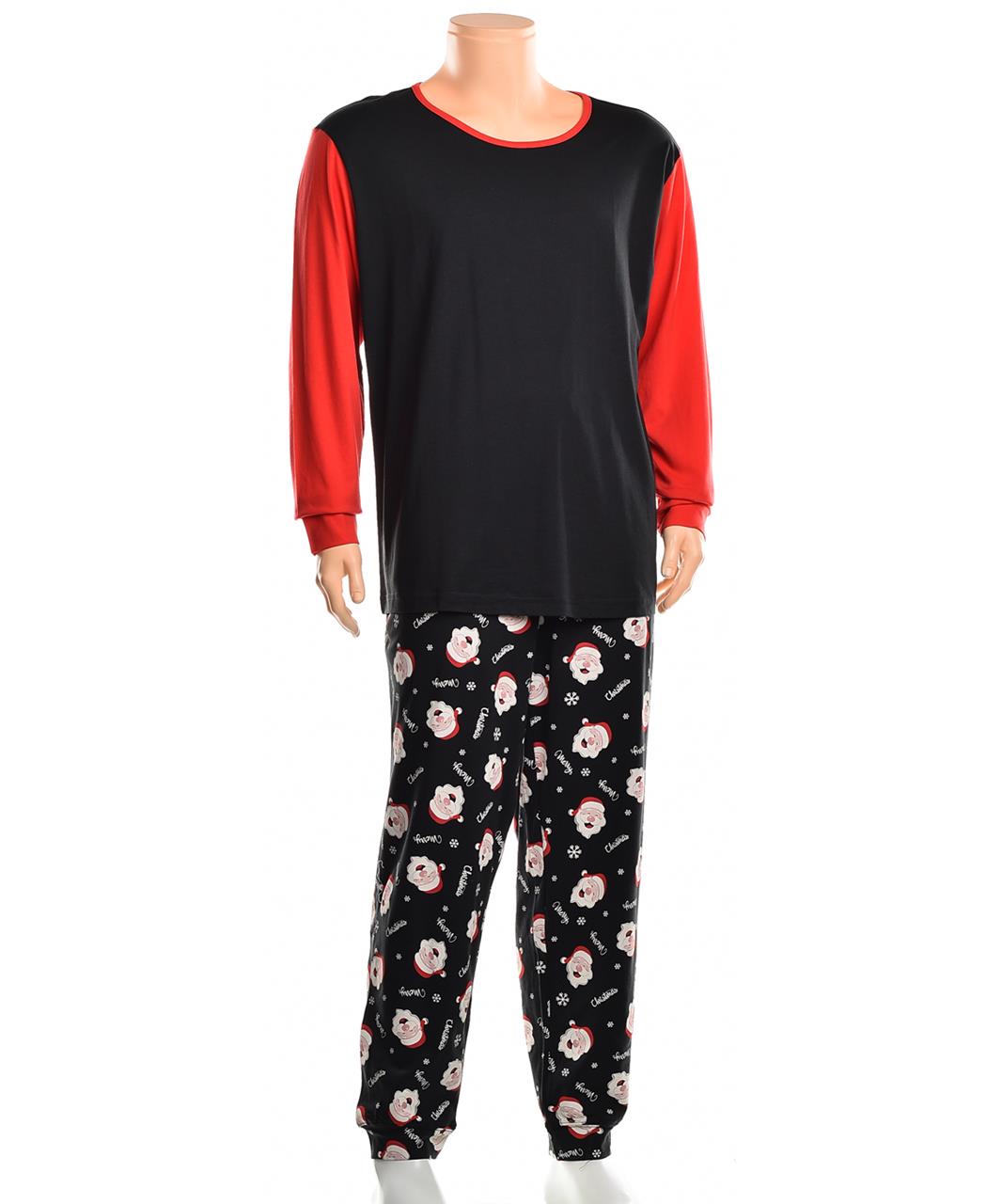 Мъжка памучна пижама с дълги ръкави: черна блуза с червени ръкави и свободни панталони с коледни мотиви. Мека, дишаща и комфортна за домашна употреба и спокоен сън. Еластичен колан, лесна поддръжка.!!