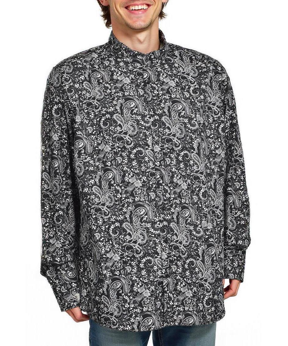 Мъжка памучна риза с дълъг ръкав и елегантен черно-бял paisley принт. Комфортна, дишаща материя, класическа кройка и копчета. Подходяща за ежедневен и полуформален стил. Налична в различни размери. M-L.