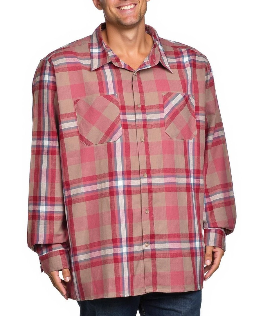 Мъжка памучна риза в класическо каре, тъмно розово и бежово. Дълги ръкави, копчета, два джоба на гърдите. Удобна, дишаща и устойчиво качество — идеална за ежедневно и свободно носене. Лесен за поддръжка.