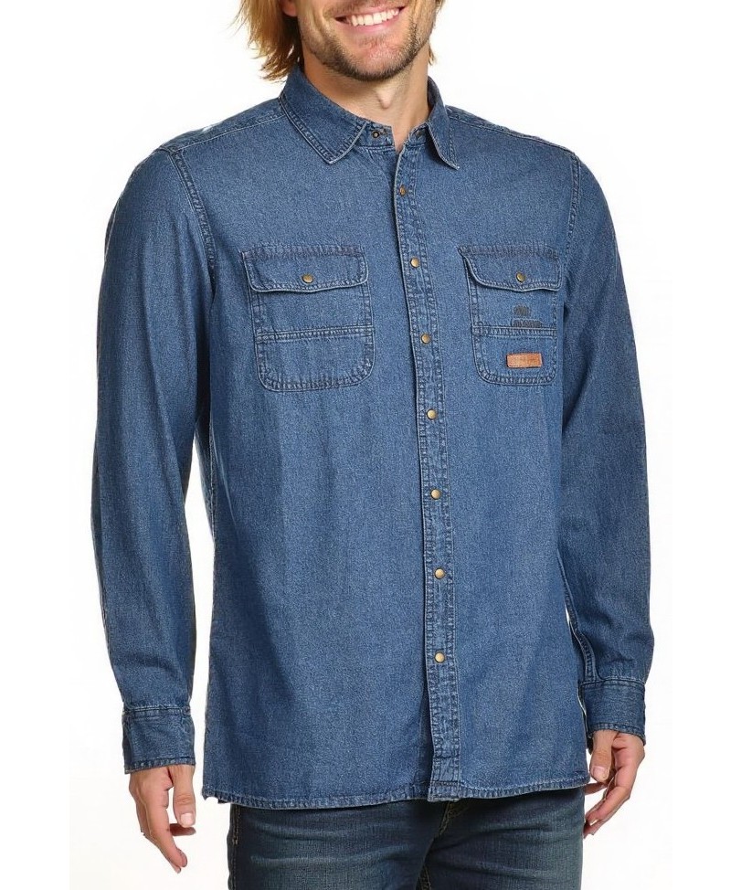 Класическа мъжка риза от 100% памук в деним стил. Дълги ръкави, два джоба на гърдите с капаци и копчета, редица копчета отпред и удобна, леко свободна кройка за всекидневна и неформална визия. Силует.