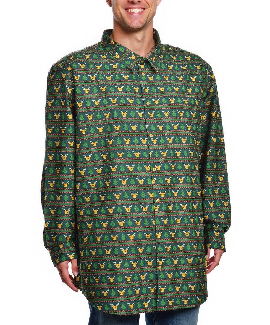 Мъжка памучна риза с яка и цялостен шарен принт в зелено и жълто. Мека, дишаща и приятна на допир. Подходяща за ежедневна и свободна визия, с удобна кройка и дискретни копчета За офис и свободно време