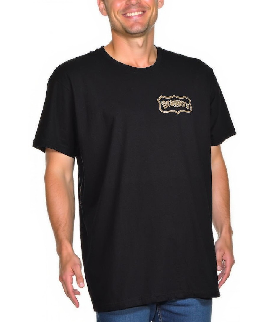 Мъжка тениска от висококачествен памук, осигуряваща комфорт и стил. Дизайнът е в черен цвят с малък декоративен надпис отпред. Подходяща за ежедневна употреба и лесна за комбиниране с различни облекла.