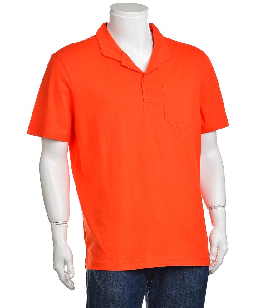 Мъжка тениска от 100% памук в ярък оранжев цвят. Отличава се с удобна кройка и класически дизайн, подходящ за ежедневна употреба. Има яка с копчета и джоб отляво. Комфорт и стил в едно.