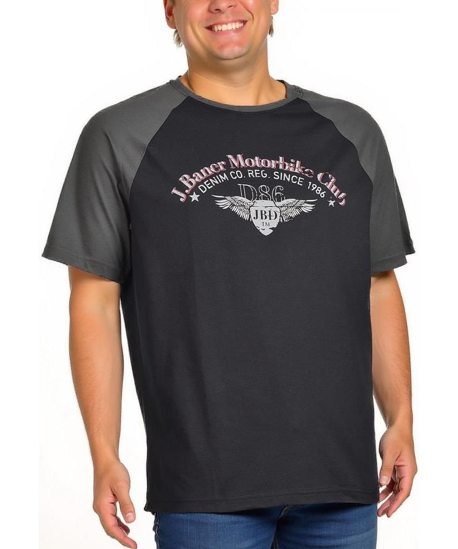 Мъжка тениска от памук с контрастни ръкави в тъмен цвят. Дизайнът включва принт "J. Bancer Motorbike Club" с ретро мотиви. Удобна и стилна, подходяща за ежедневно носене.