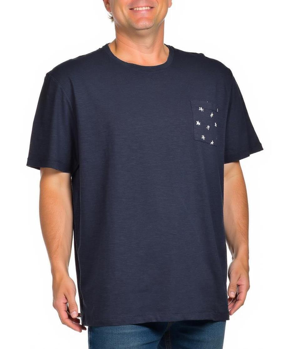 Мъжка тениска от мек памук, осигуряваща комфорт през целия ден. Класически дизайн с къс ръкав и кръгло деколте, допълнен с джоб на гърдите с дискретни шарки. Перфектна за ежедневието.