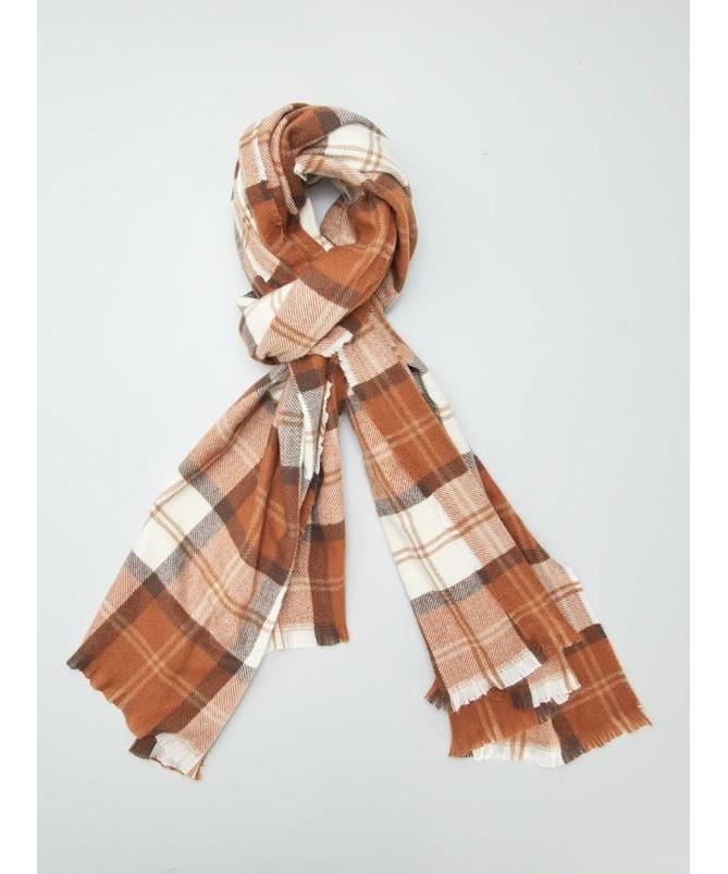 Мъжки кариран шал в топли кафяви, бежови и бели тонове. Мек и приятен на допир, идеален за есенно-зимния сезон. Универсален аксесоар, който придава стил и уют на всяка визия. Подчертава мъжествеността.