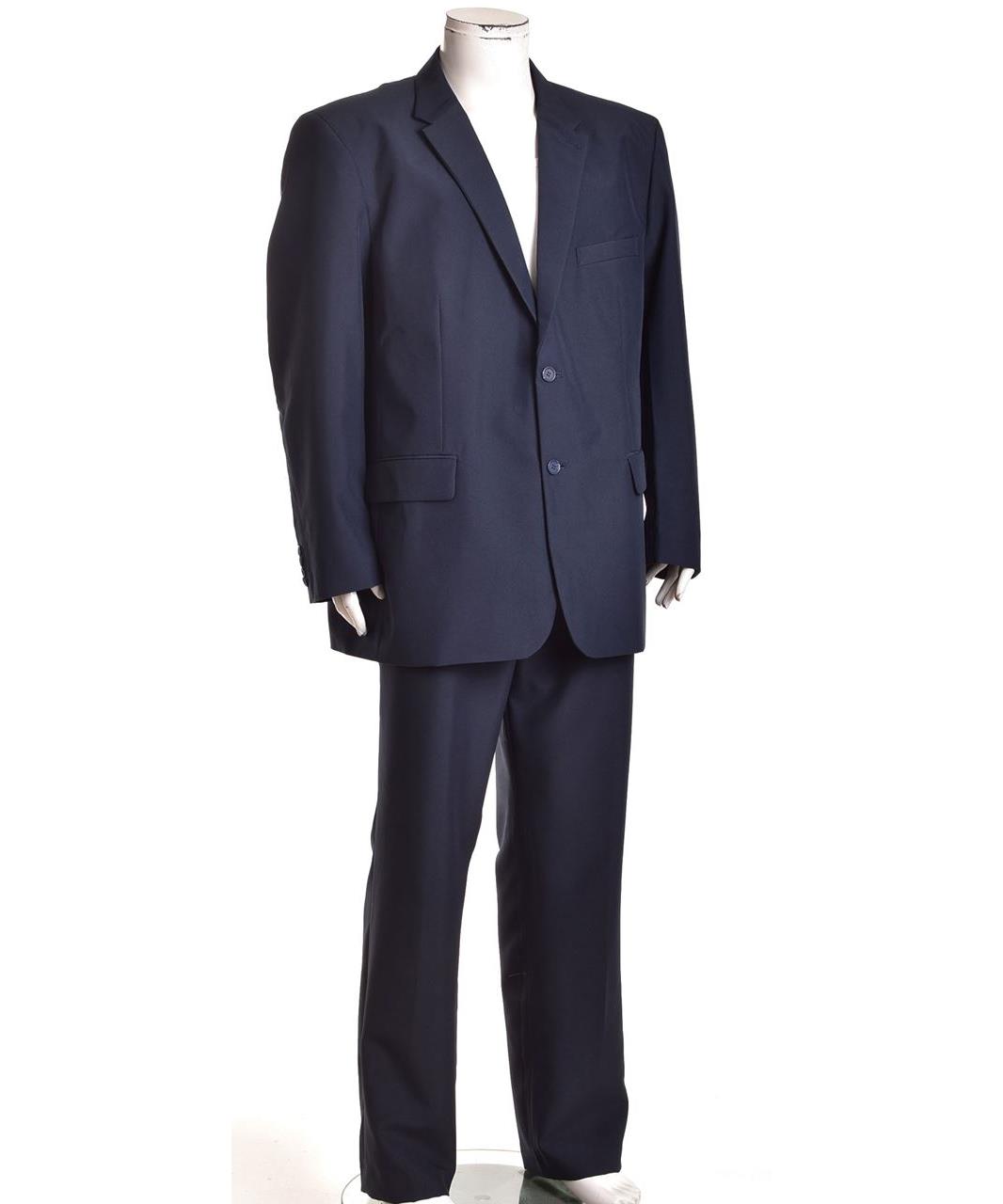 Класически мъжки костюм в тъмносин цвят, едноредово закопчаване с два бутона, панталон с прав крачол и функционални джобове. Подходящ за бизнес и официални събития, изчистен елегантен силует. Качество