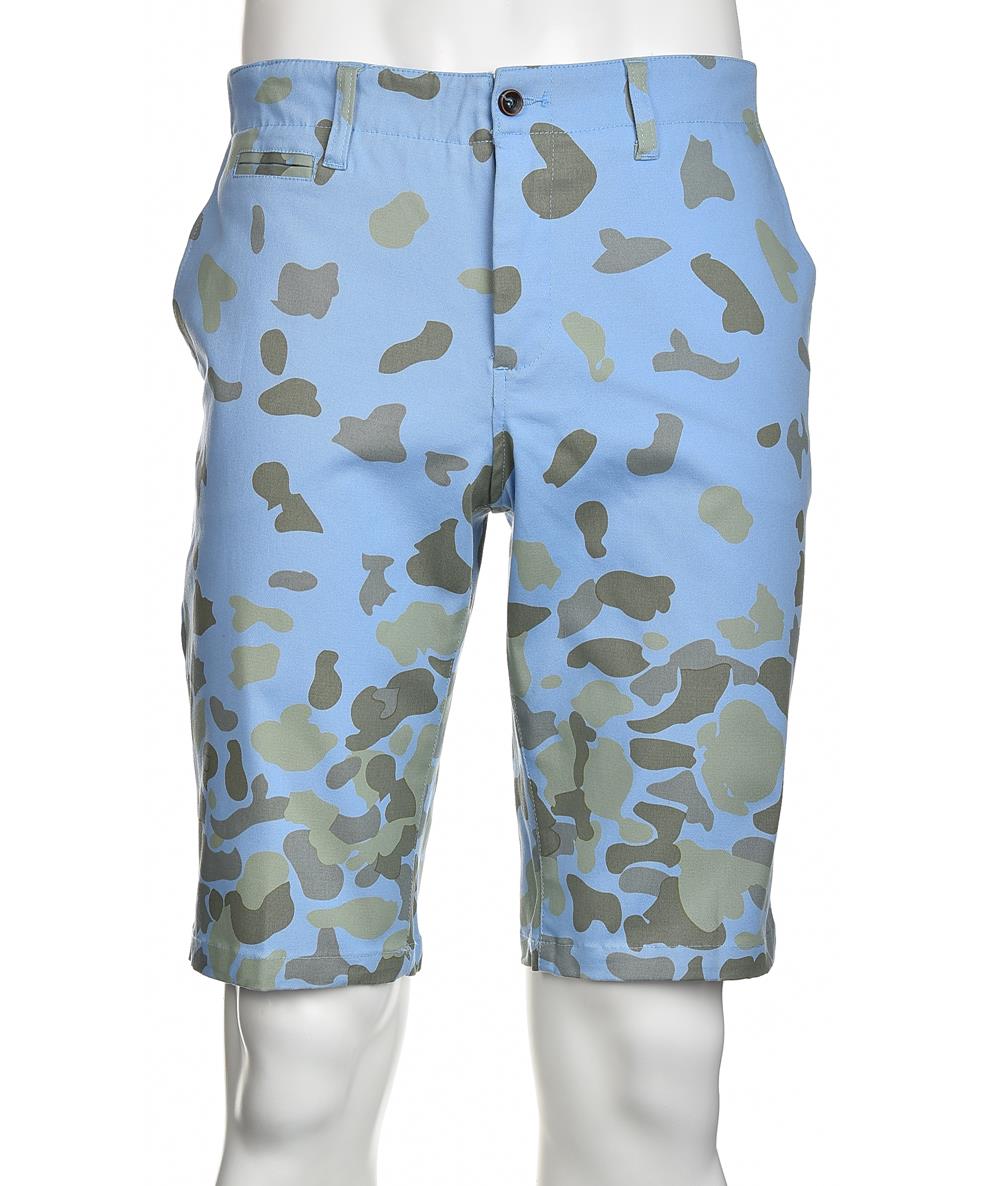 Мъжки къс панталон от висококачествен памук с модерен камуфлажен принт в синьо и сиво. Идеален за летни дни, предлага комфорт и стил. Подходящ за ежедневни и спортни облекла. С практични джобове и капси за колан.