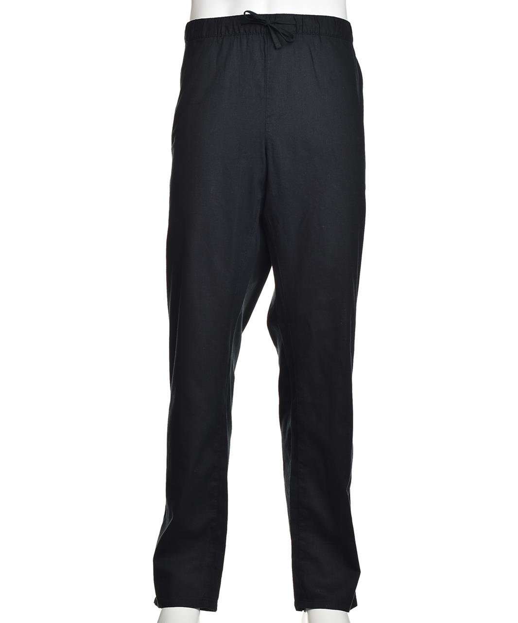 Мъжки панталон от ленена смес, включваща памук, предлагайки комфорт и дишаемост. Черният цвят и еластичната талия с връзки го правят подходящ за ежедневно носене и лесен за съчетаване с различни стилове.